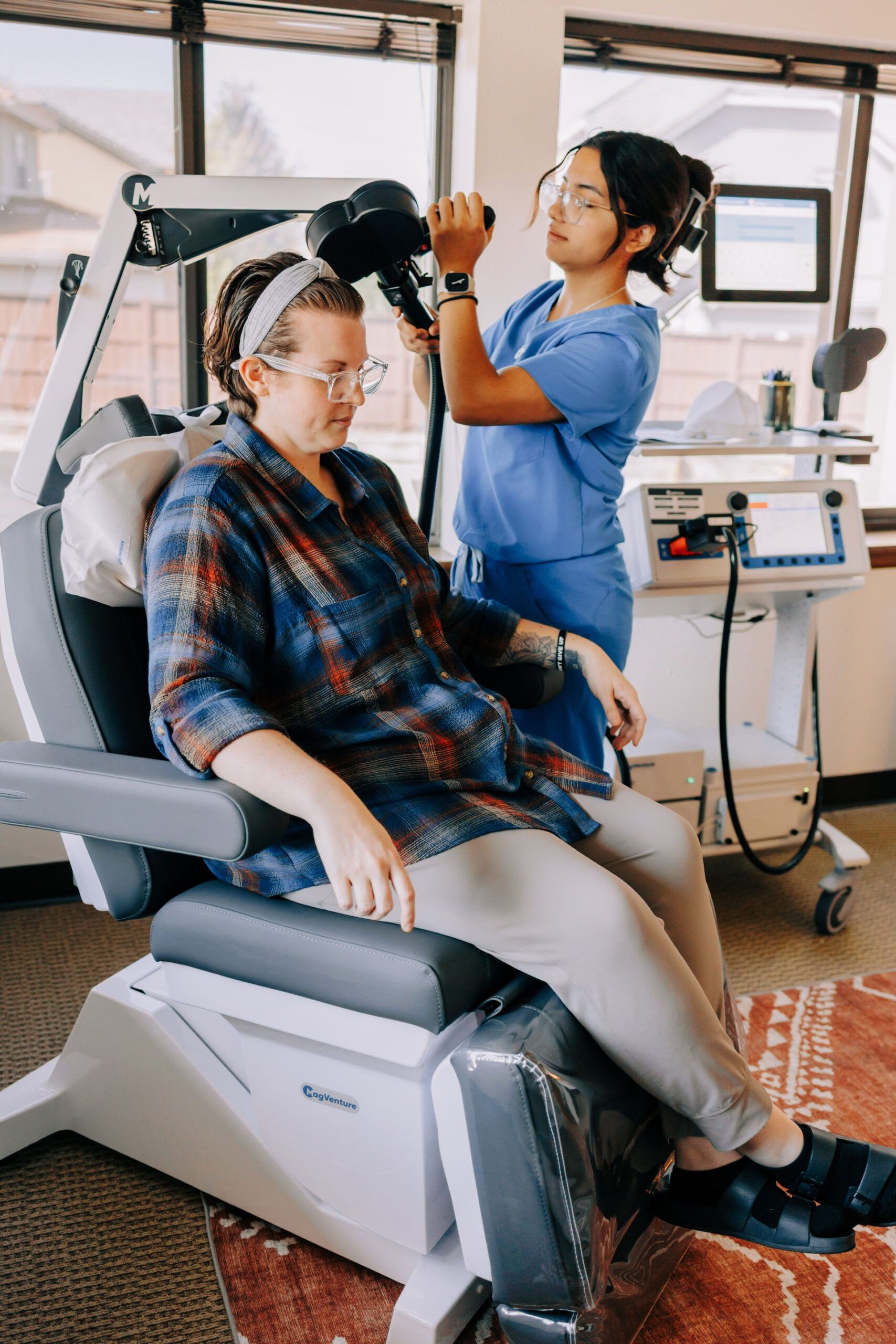 TMS uses focused magnetic pulses to stimulate brain regions, promoting healthy neural activity. Treatments are safe, outpatient-based, and typically involve little to no downtime.
